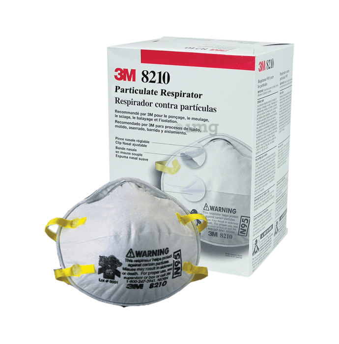 3M™ Particulate Respirator 8210, N95 is a disposable particulate respirator that is designed to help provide reliable respiratory protection of at least 95 percent filtration efficiency against certain non-oil based particles. This respirator is designed for use for particles such as those from grinding, sanding, sweeping, sawing, bagging, or other dusty operations. This respirator can also help reduce inhalation exposures to certain airborne biological particles (examples: mold, Bacillus anthracis, Mycobacterium tuberculosis), but cannot eliminate the risk of contracting infection, illness, or disease. The respirator incorporates 3M’s proprietary technology with advanced electrostatically charged microfiber filter media designed for ease of breathing. This respirator is compatible with a variety of protective eyewear and hearing protection.