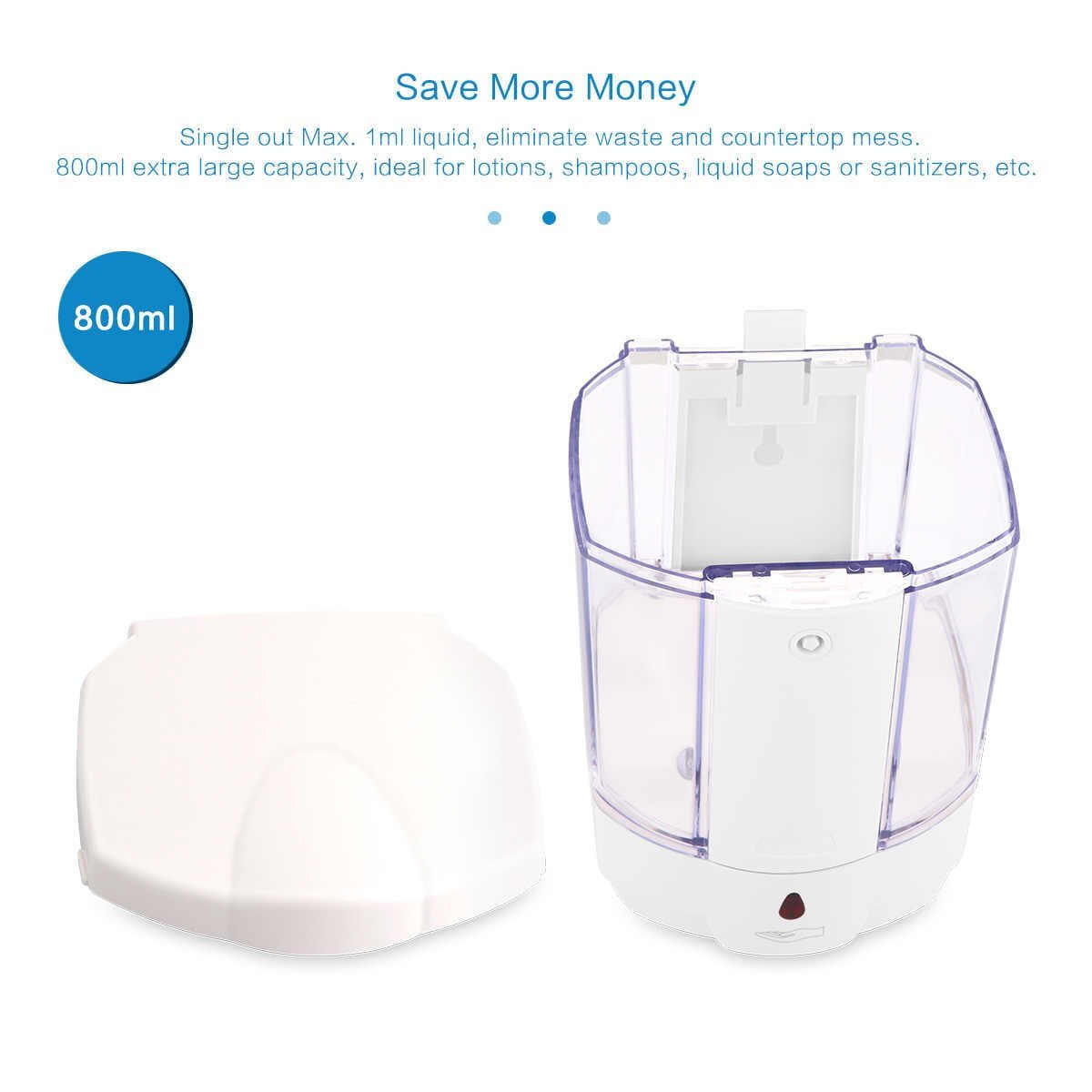Save More Money: Single out Max. 1ml liquid, eliminate waste and countertop mess. 800ml extra large capacity, ideal for lotions, shampoos, liquid soaps or sanitizers, etc.
