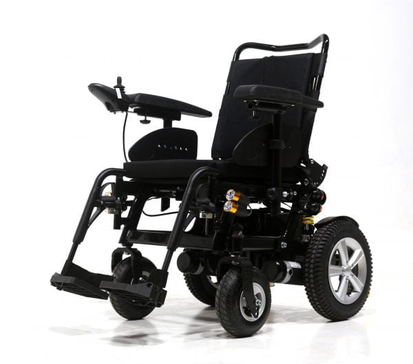Electric wheelchair Bugatti 1453se features a fixed structure of high resistance steel. Reclining seat in 8 positions. Height and width adjustable armrests, removable. Folding footrests towards the outside, adjustable in height. Anti-tip included. Vg / pg50a joystick the kit of lights front, rear, turn signals, and ‘warning’ function included as standard. Front and rear ‘anti-puncture wheels. Optional pneumatics. Double rear cushioning. 50ah batteries included the possibility to operate with 75ah batteries. Colors: shiny blue or shiny black optional gadgets light kit. Lift footrest. Curb climbers. Technical characteristics 1453se new Bugatti supported weight 140 kg weight with batteries 70 kg (48kg without batteries) front-wheel 200mm solid rear wheel 300mm solid maximum speed 9 km / h. Pending 15th autonomy until 25 km (bat. 50ah) battery weight 11 kg x 2 battery 50ah x 2 or 75ah x 2 motor dc 24v / 320w * 2