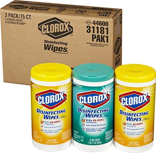 Clorox Disinfecting Wipes can take on bigger and tougher messes with the new and improved thicker wipe with two times the cleaning power compared to a wet paper towel. They are 40% thicker than previous wipes for better durability and better particulate pickup with the same Clorox disinfecting power. Clean grease, soap scum and dirt and kill 99.9% of germs that can live on surfaces for up to 48 hours. Each wipe can kill 99.9% of viruses and bacteria including Human Coronavirus, Influenza A2 Virus, Staph, E. coli, MRSA, Salmonella, Strep and Kleb. Remove more than 99% of allergens like dander, dust mite and pollen with the ease of a wipe. These wipes are safe for use on a variety of hard and nonporous surfaces including finished hardwood, sealed granite and stainless steel. Clean, disinfect and deodorize your kitchen, bathroom, car, grocery cart or your workplace with this multi pack. This bleach free pack includes five canisters to keep anywhere dirt or germs may build up.