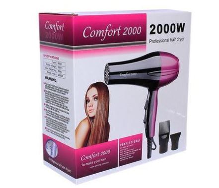 Comfort hair dryer has been designed with a good grip handle when held between the palm of your hands. The extremely silent operation and its particularly lightweight structure provides unbeatable convenience and is ideal for frequent use both at home and in a salon. This professional hair dryer neutralizes frizziness, leaving your hair soft, silky and manageable for a long time. You can achieve professional results like that perfect blow-dry experience, roller set style and just basic hair drying with no damage.