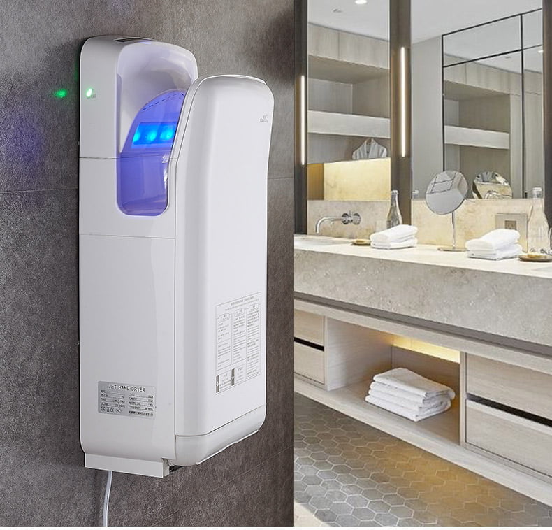 - PREHEAT SENSOR FEATURE – Jet Dryer SMART preheats the heating element before you insert hands into the drying chamber ensuring warm and pleasant air is blown from the start of drying.