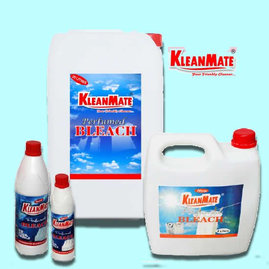 Kleanmate Perfumed Bleach is available in 1 litre, 500ml, 4 litres and 25 litres. It is used for both household cleanings and fabric whitening to produce an excellent whitening result.