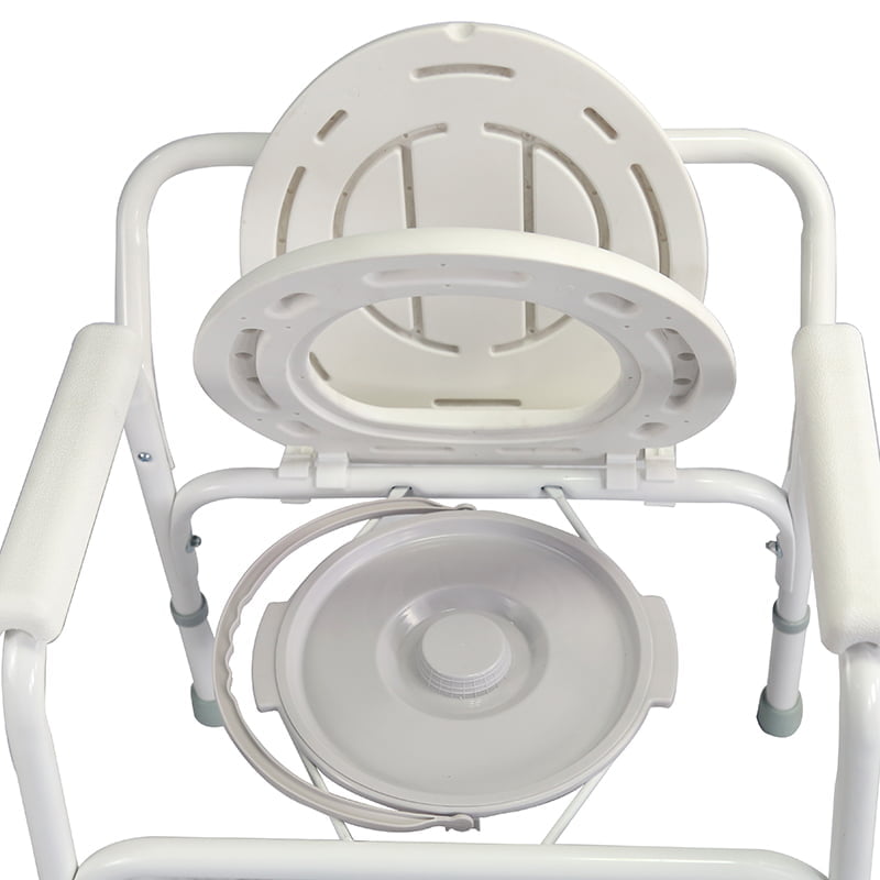 The plastic armrests offer a comfortable place to rest on when sitting and offer a safe grab when making sitting or standing. The bottom tips are made of anti-slip rubber to reduce the accident of slipping. Each leg has a spring lock pin for adjusting seat height to fit different users.