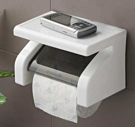 Toilet Roll Holder/ Tissue Paper Stand Box with Shelf Rack (White)